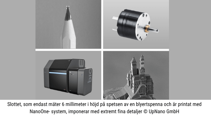 UpNano har utvecklat 3D-skrivaren NanoOne, som kan skapa strukturer så små att de endast syns i elektronmikroskop. Med hjälp av så kallad 2-fotonlitografi byggs komponenter upp punkt för punkt genom att ljuspartiklar härdar materialet i en kontrollerad process.