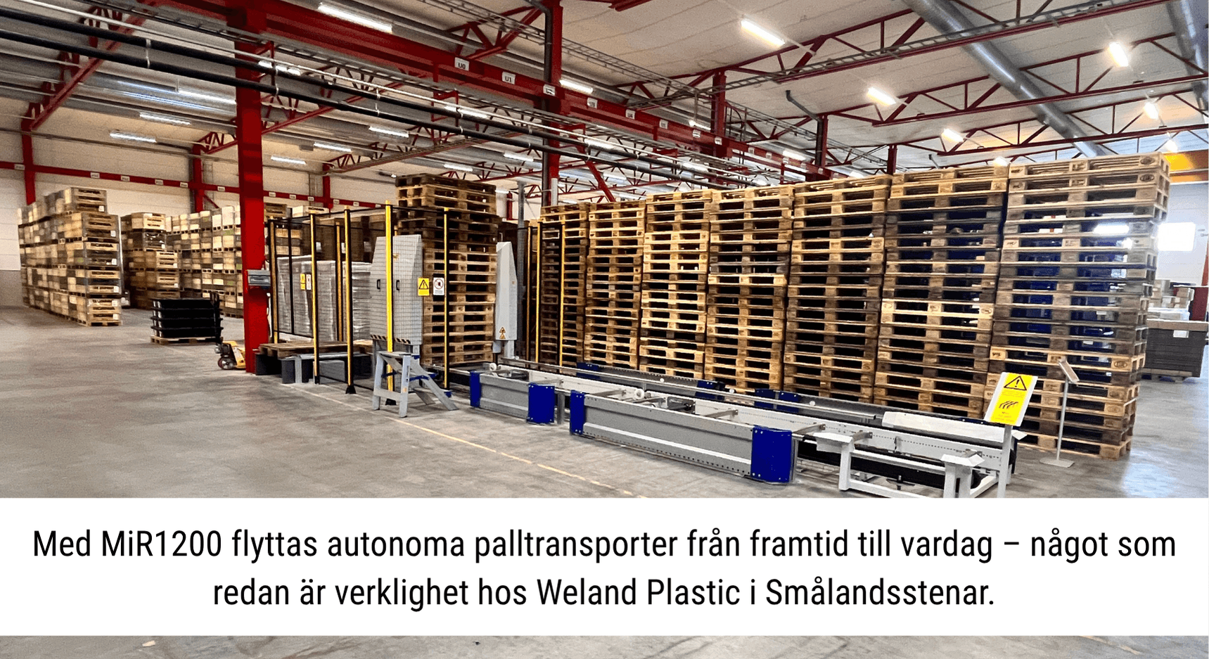 I en fabrik i Smålandsstenar rullar två självkörande MiR600-robotar tyst genom produktionshallarna. Deras uppdrag? Att automatisera pallflödet – från formsprutorna till plastning, bandning och vidare till lagret. Resultatet: färre truckar, jämnare flöde och högre säkerhet.