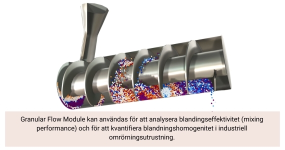 Vidare lanseras en helt ny tilläggsmodul: Granular Flow Module. Denna modul använder den Diskreta Elementmetoden (DEM) för att skapa beräkningsmodeller av tätpackade partiklar. Den är direkt tillämplig inom industrier som läkemedel, kemisk bearbetning, jordbruk och gruvdrift.
